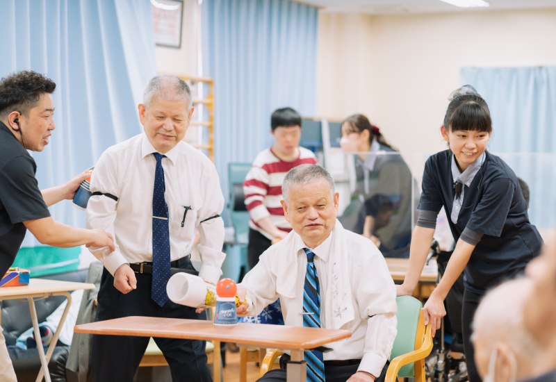 高齢者の方と障がい者の方が1階と2 階に分かれて過ごすデイサービス。